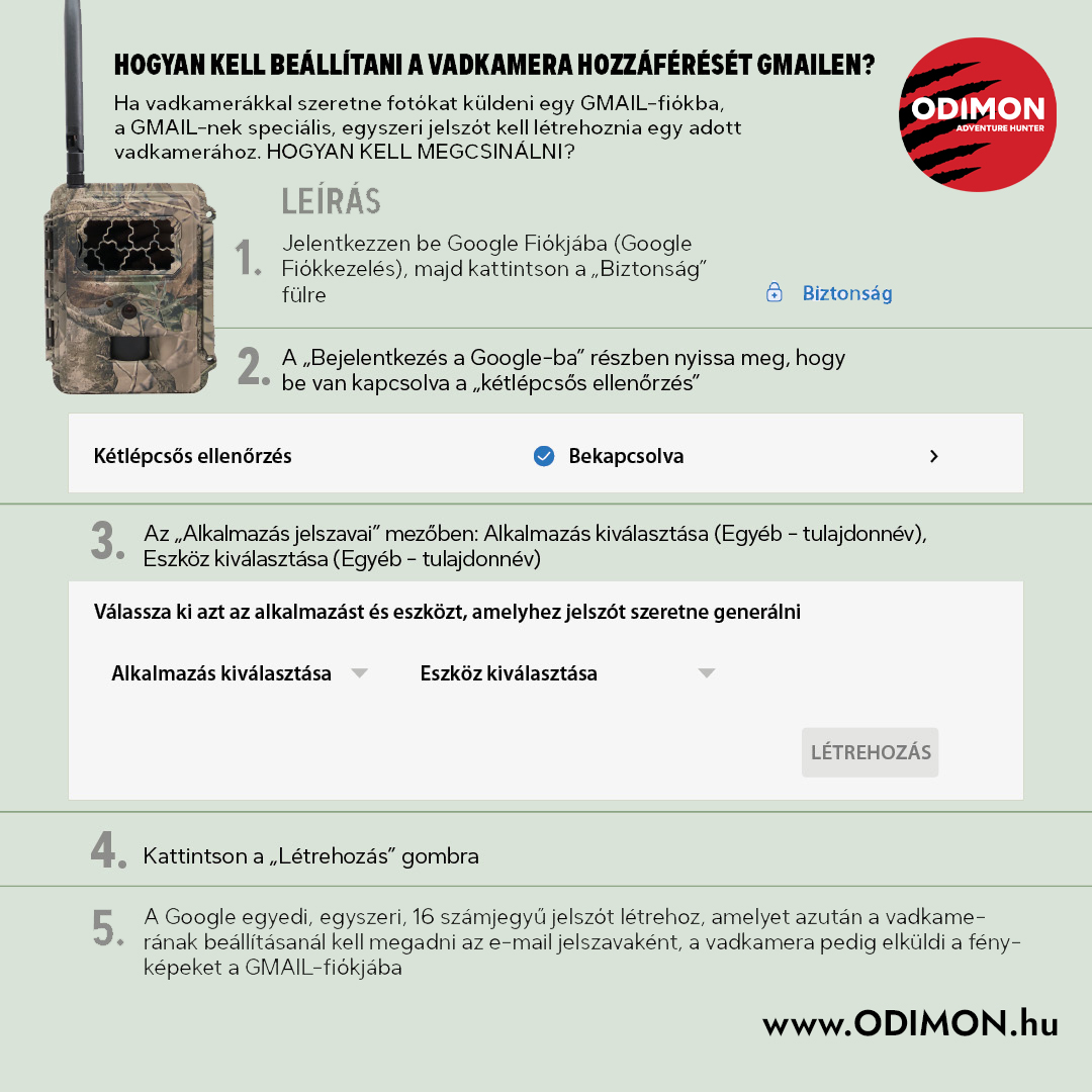 Rövid utasítások a vadkamerához való hozzáférés beállításához a GMAIL- en keresztül