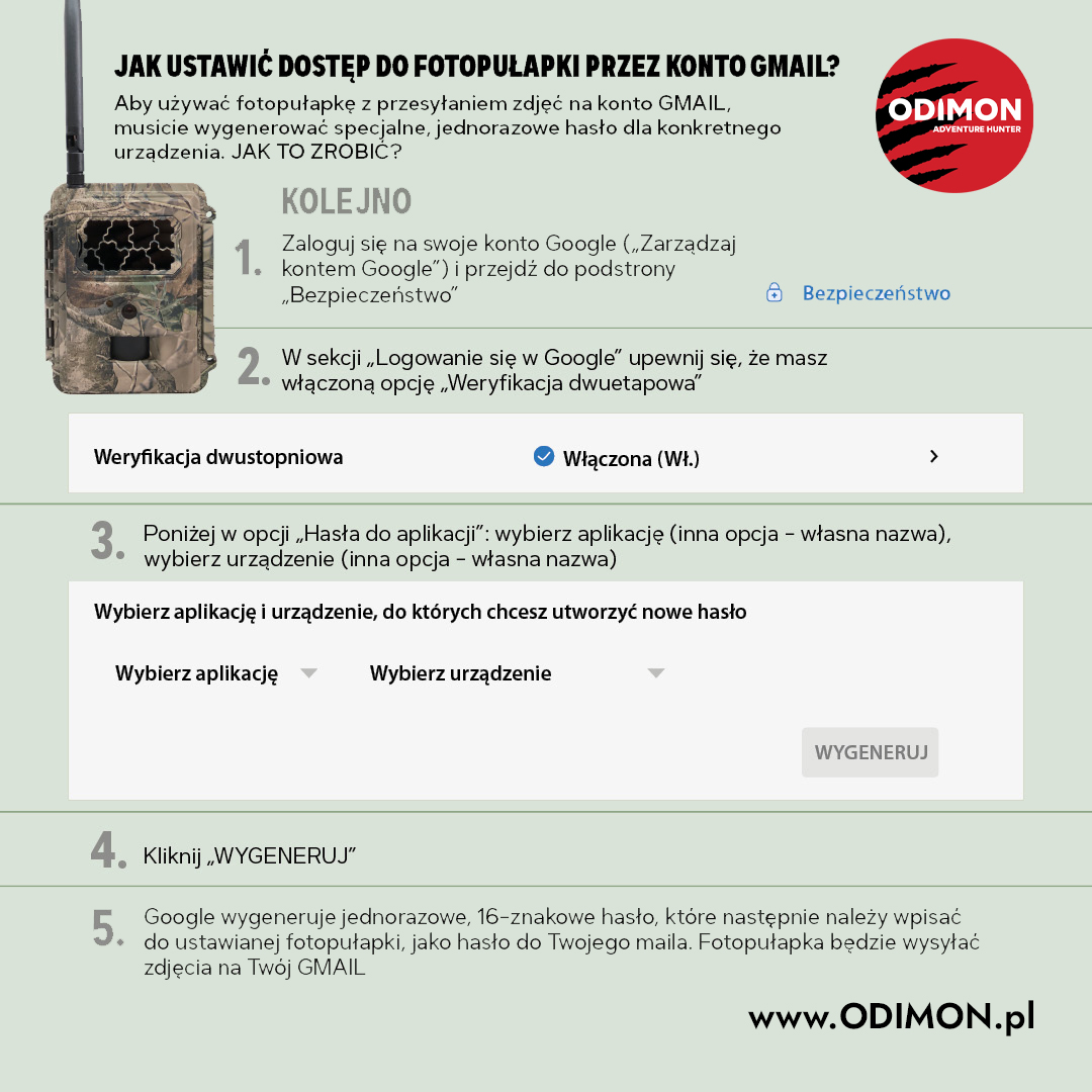 Krótka instrukcja jak skonfigurować dostęp do fotopułapki przez GMAIL: